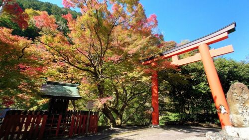 京都 #貴船神社 一の鳥居のそば #貴船川 と #鞍馬川 の合流点、紅葉の下に鎮座する #梶取社。#玉依姫 を乗せ、淀川〜鴨川をさかのぼったとされる #黄船 の梶を巧みに取った #梶取大神 を祀るとも伝えられます 目次 京都 貴船神社・一の鳥居。梶取社 貴船神社…