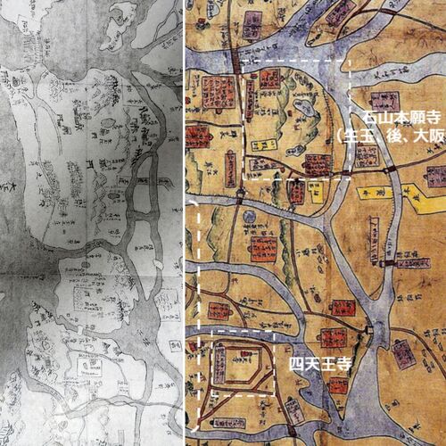 鵲森宮(かささぎもりのみや、森の宮神社)の社務所で、宮司さんに話をお聞きしている時、平安後期、鵲森宮が描かれたという古地図を見せていただき、了解の上、撮影させていただいた(上が東、左が北、右が南の地図) 参詣者からよく話を聞かれるので、説明…