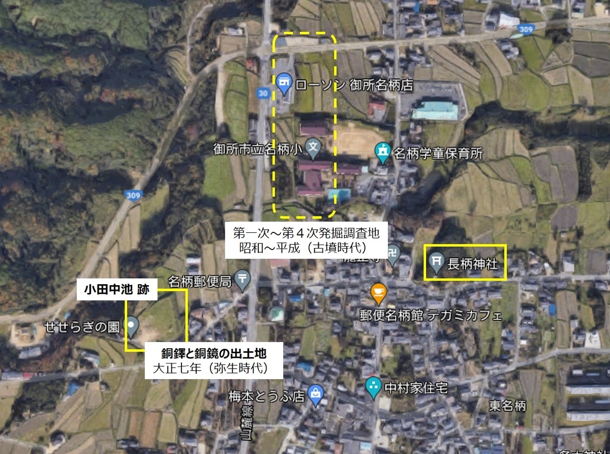 出雲(鴨)族の弥生時代、葛城の大鳥 を見晴るかす麓、長良神社と名柄遺跡の点を繋げてみると、ここに初期型の銅鐸と銅鏡がセットで埋納された意味、また、ここで行われていた祭祀のスガタが浮かび上がってくるのではないでしょうか。
