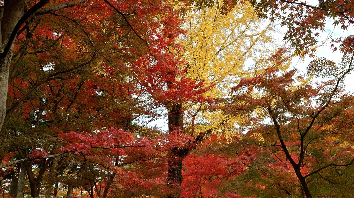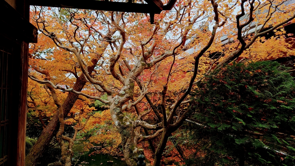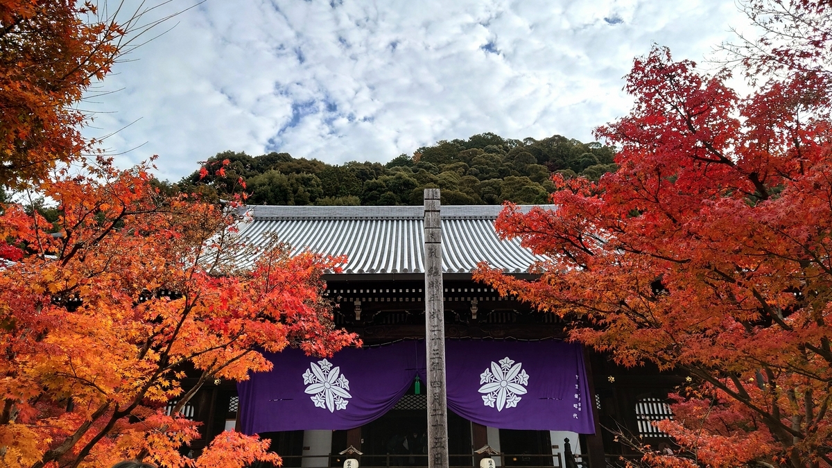 古刹のお堂を渡り廊下で巡りながら、紅葉の季節を楽しむ…