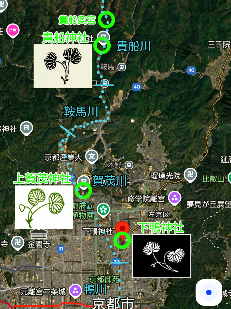 貴船神社−上賀茂(賀茂別雷)神社−下鴨(賀茂御祖)神社。