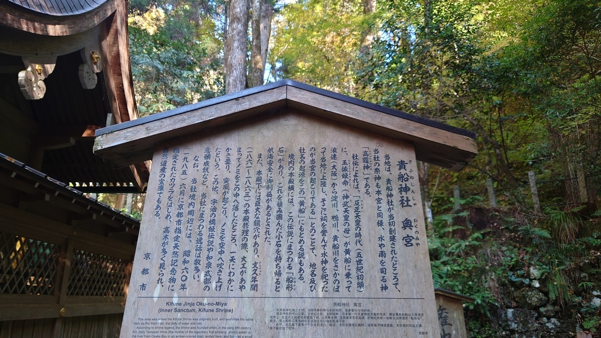 貴船奥宮の標高は340m、貴船神社300m、上賀茂神社90m、下鴨神社60m。